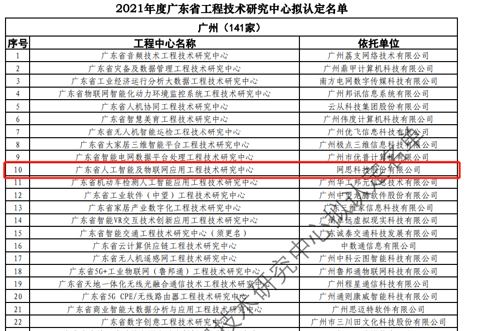 日前,广东省科技厅发布2021年度广东省工程技术研究中心名单。经过层层筛选、专家评审,依托AG官方入口试玩(综合)官方网站入口/网页版/苹果/安卓,建设的“广东省人工智能及物联网应用工程技术研究中心”榜上有名。广东省工程技术研究中心主要依托省内行业、领域具有科技实力的、拥有一定规模以上创新型企业建设,部分依托高校和科研院所组建。工程中心旨在